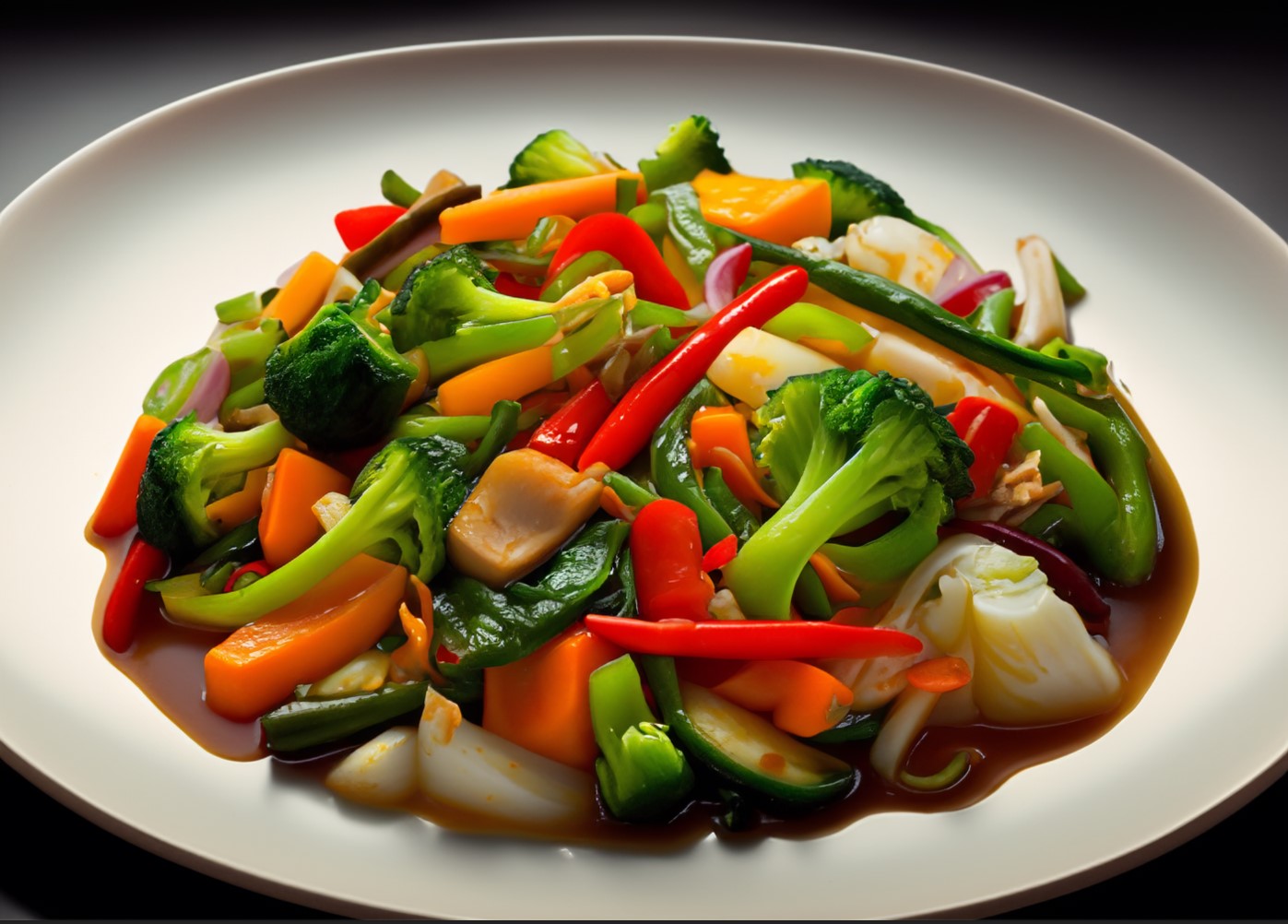 A veggie extravaganza wok-tossed in a garlicy embrace, fit for herbivores and herbivores at heart. - $13.99 - 320 calories